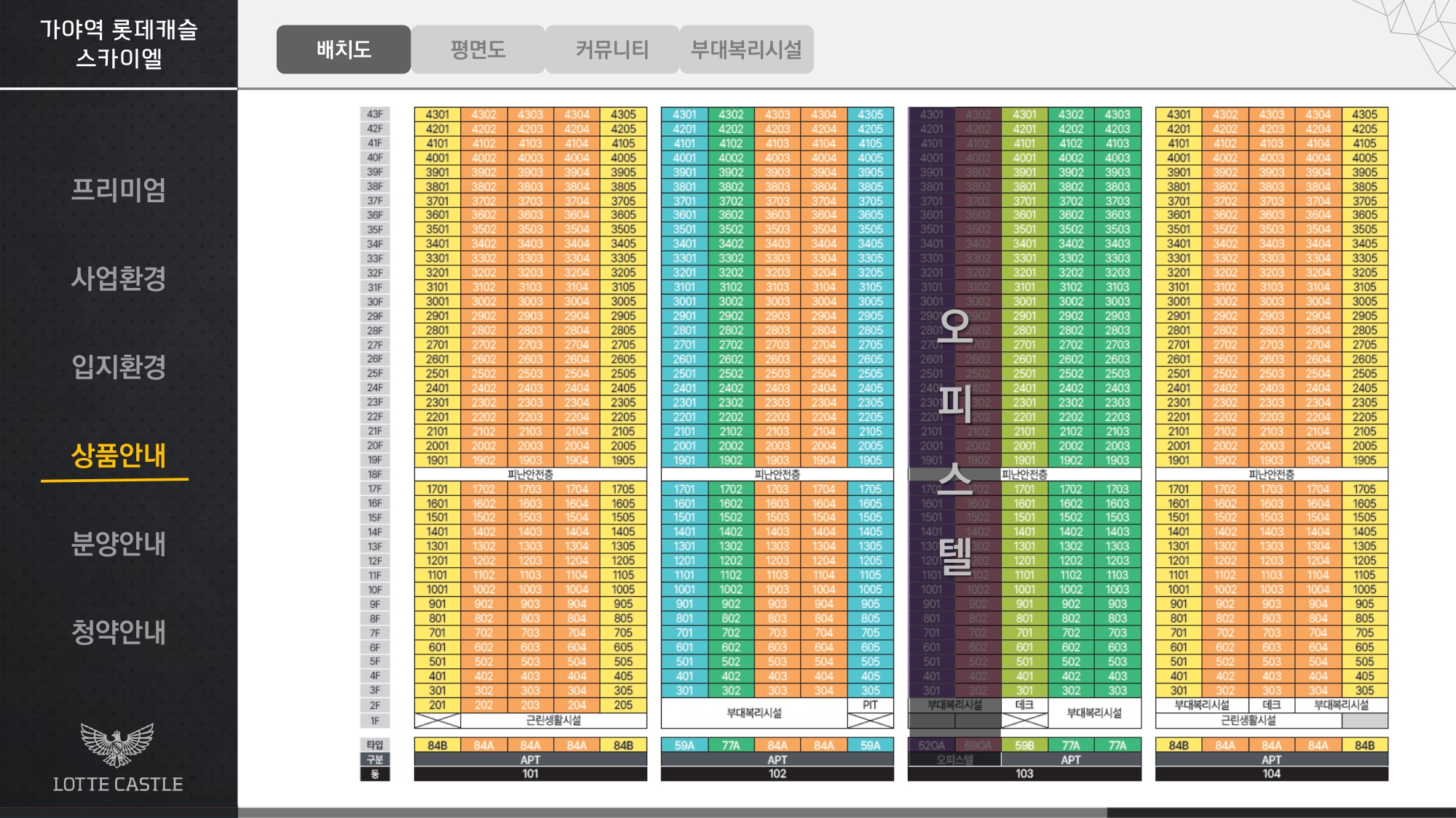 ※ 타입·층·향에 따라 상이하며, 로열동·로열호실 선점 가능